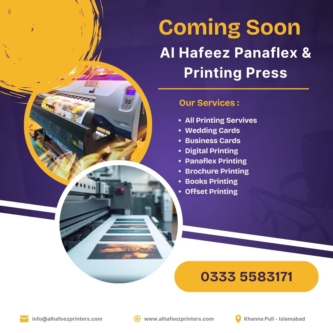 Al Hafeez Panaflex & Printing Press is a professional printing service provider offering high-quality printing solutions for businesses and individuals. We specialize in modern printing techniques with a focus on creativity, durability, and customer satisfaction.